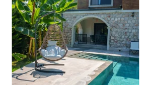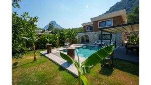 Toplamda 3 adet odası bulunan villamızın her odasında banyo mevcut olup,maksimum 6 kişilik konaklama imkanıyla standart aileler ve arkadaş grupları için mükemmel bir tatil deneyimi sunar.